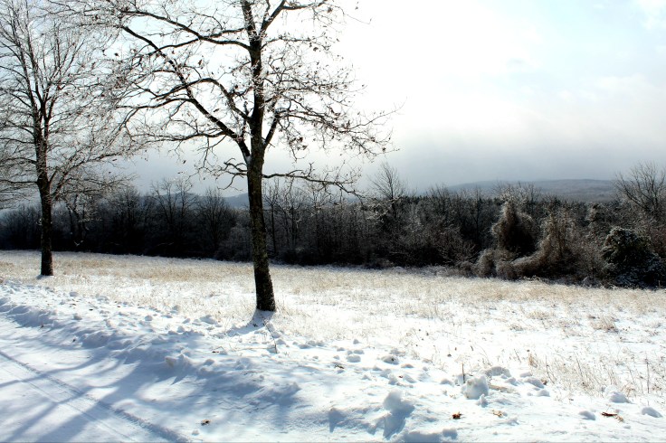 My beige skirt and black cardigan blend nicely with the winter landscape.
