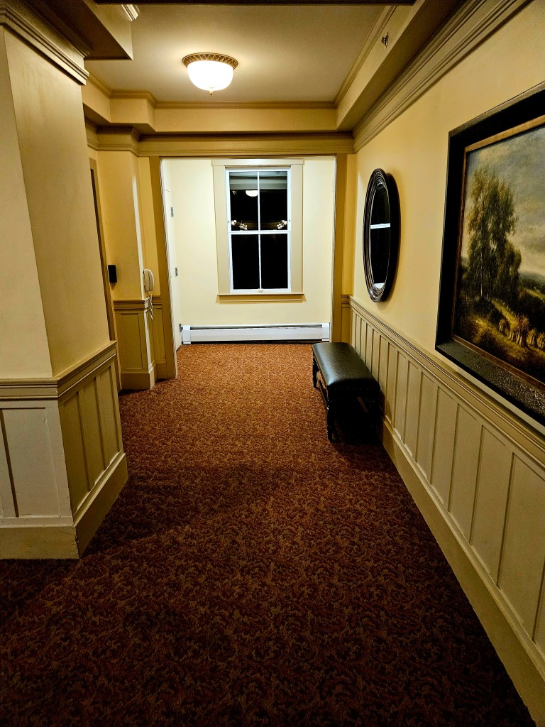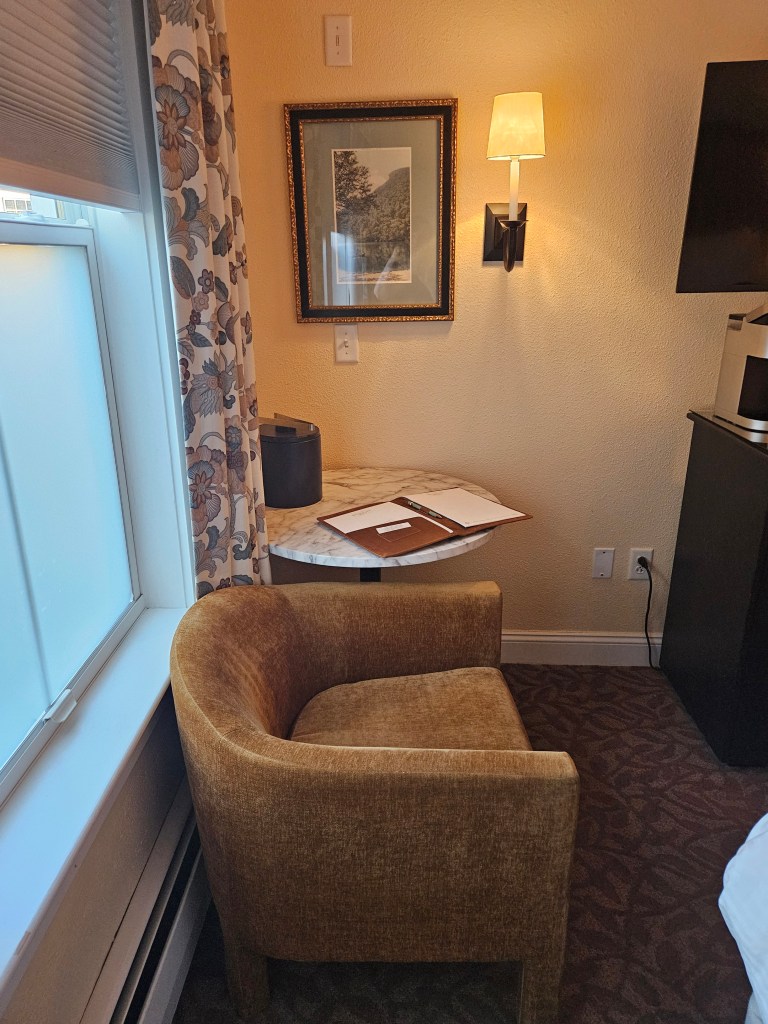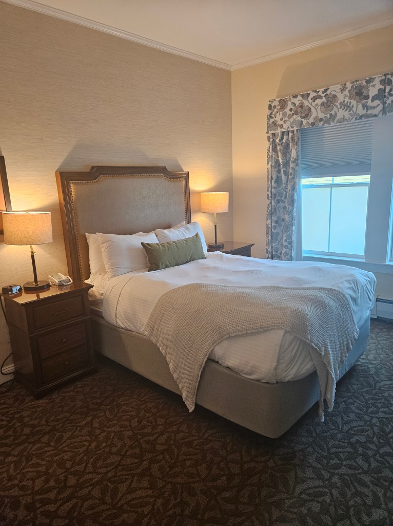 The hotel offers dining-in room service from their Harvest Tavern and my dinner consisted of the Mountain View Grand cheeseburger with grilled red onions, Vermont white cheddar, lettuce and tomato, served on a brioche bun; and fries on the side. It was hearty and delicious and there was no room for dessert (which is just as well). The hotel does offer onsite fine dining at the 1865 Wine Cellar. Reservations are required and jeans, shorts, sneakers, and baseball caps are not permitted. That would give me a chance to wear heels and a skirt which sounds fine to me!